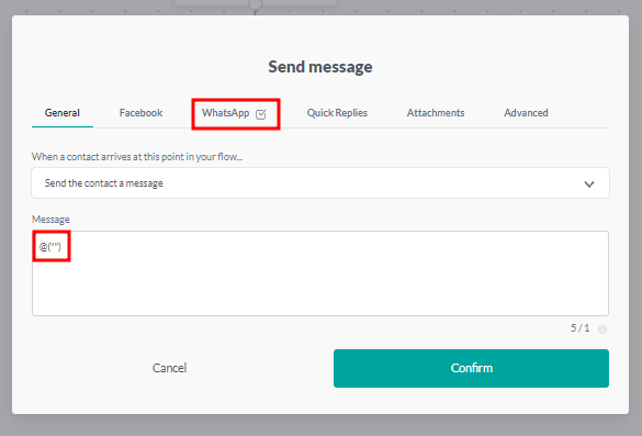 At this point, it is also possible to add variables that will make the message more personalized, such as the variable @contact.name, which addresses the user by the name registered in their own WhatsApp.