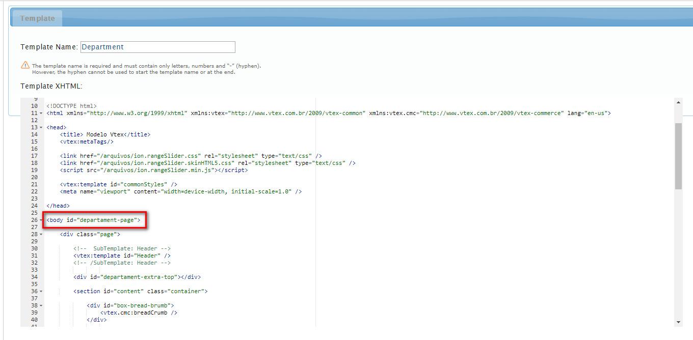 However, when loading a layout that uses this template, we note that the departmento class has been added to the body of the page.