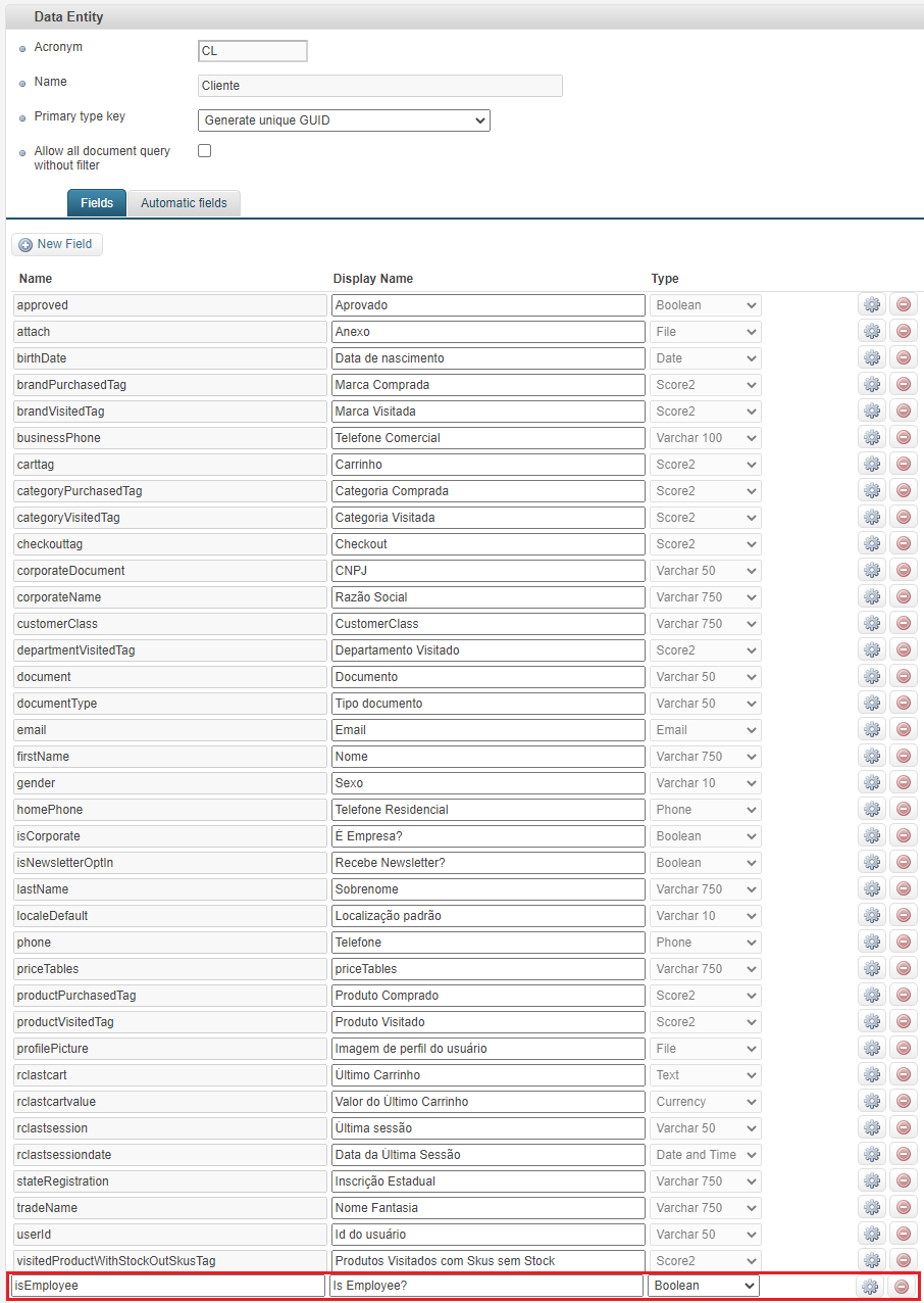 This article assumes that the employees are properly registered with a boolean field isEmployee set to true in their respective documents for the CL data entity, as shown in the figure below.
