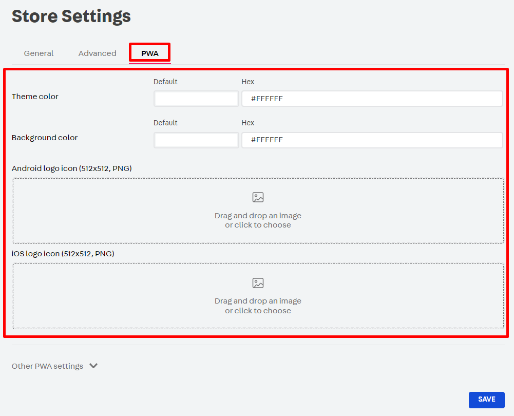 1. In Other PWA settings, complete the fields as indicated below: