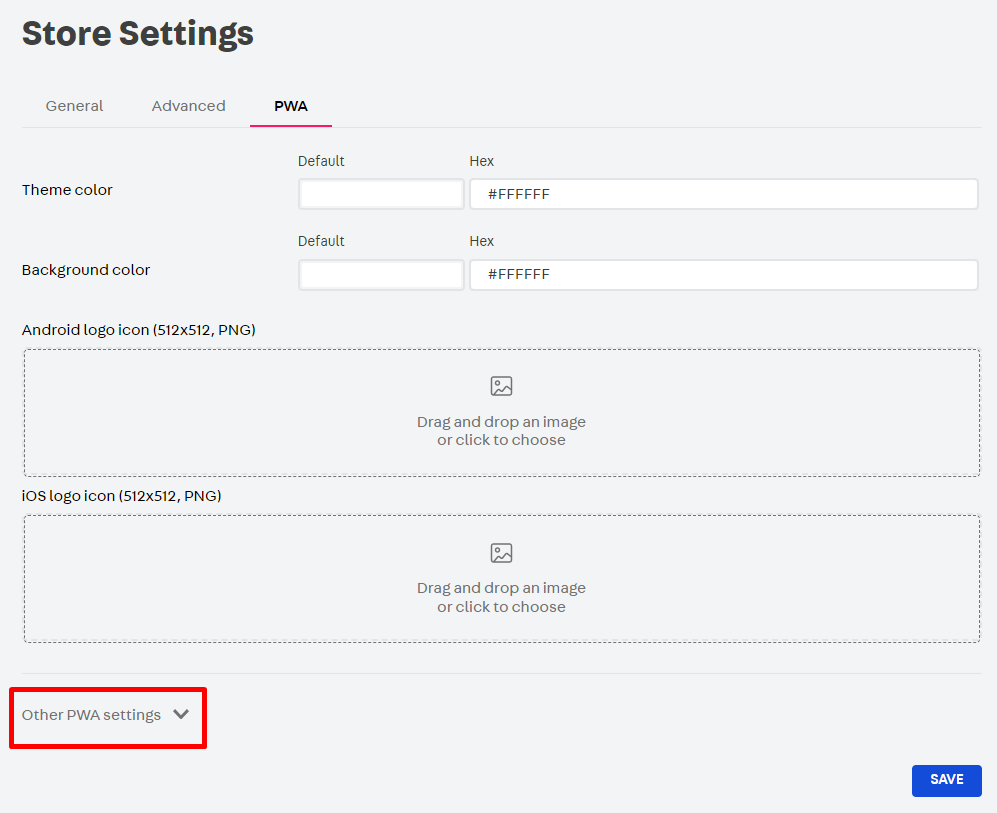 1. Scroll down and go to the Other PWA settings field. Click the arrow to show the other settings.