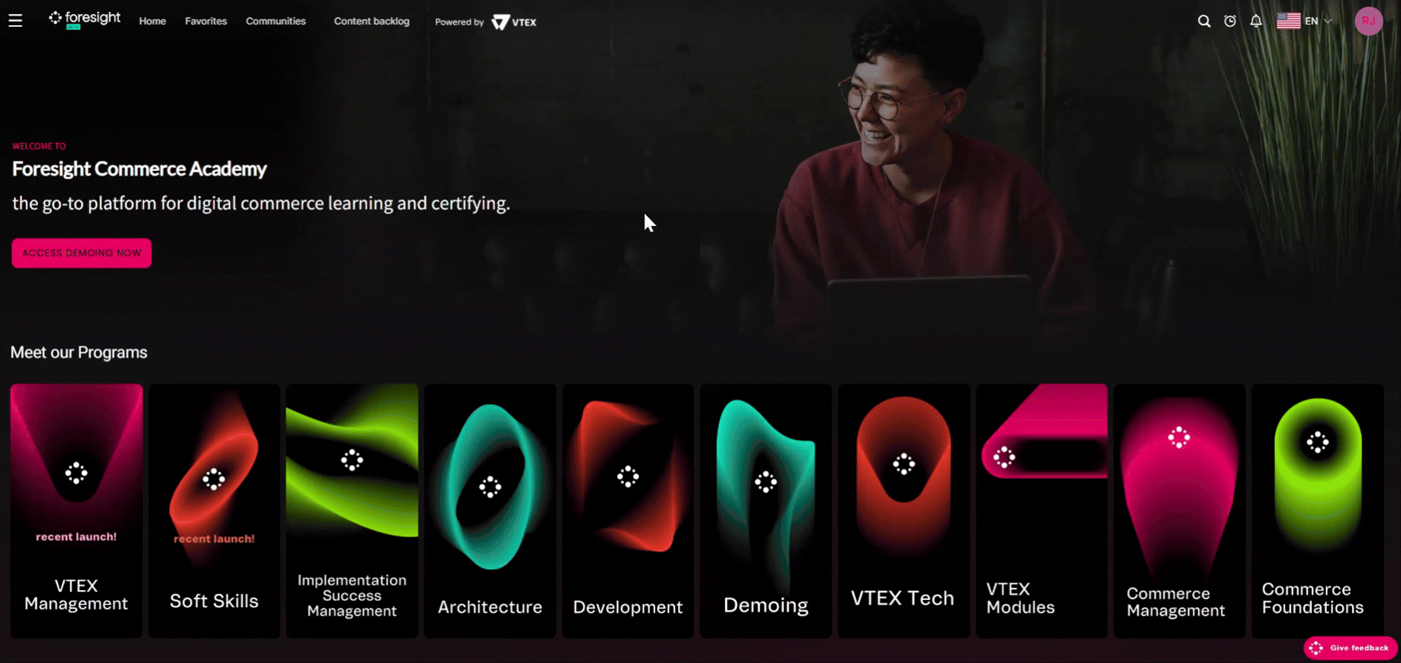 Foresight Commerce Academy is a learning platform promoted by VTEX to share knowledge on different topics related to VTEX business, architecture, and technology.