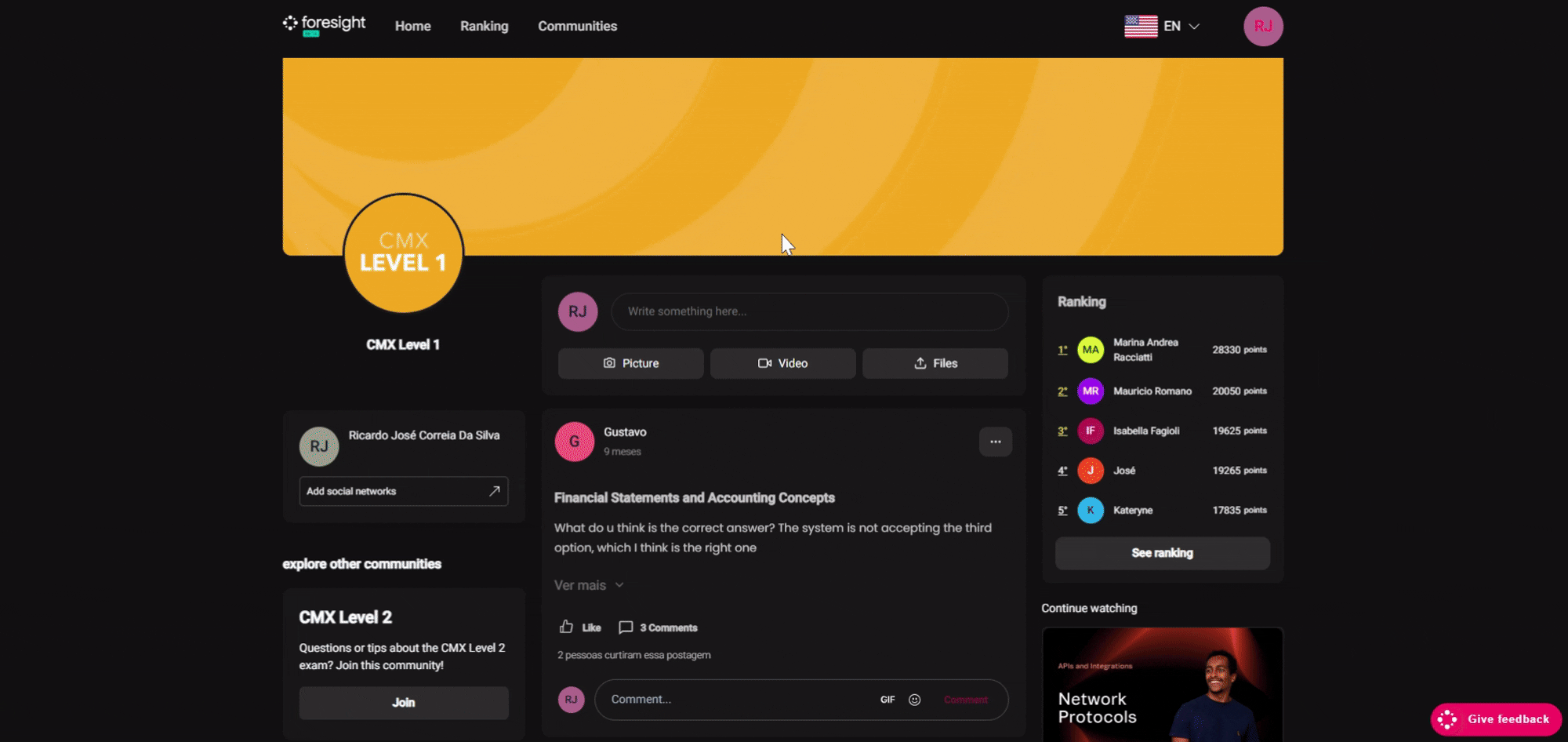Foresight also has member communities, where you can share experiences or ask questions about specific issues, and a ranking system, which tracks and ranks all users based on their level of interaction on the platform.