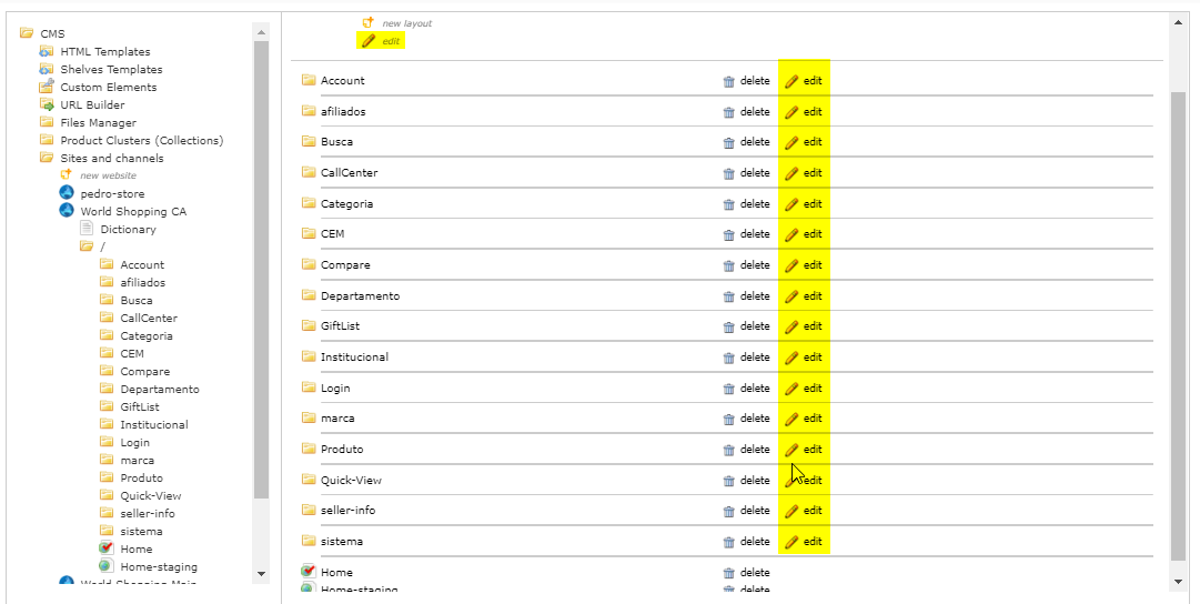 1. In the VTEX Admin, access Storefront > Layout and open the folder CMS.