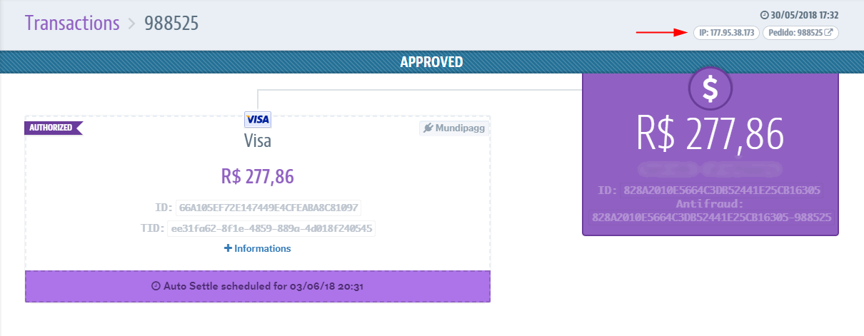 To capture the IP by integration, it is possible to check the API Get Order with the orderID.