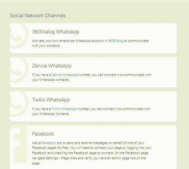 We provide a standardized approach for all channels, meaning that even if you choose more than one option, the platform will handle the contacts in the same way.Another way to integrate channels is through the Discovery tab in the Applications module.