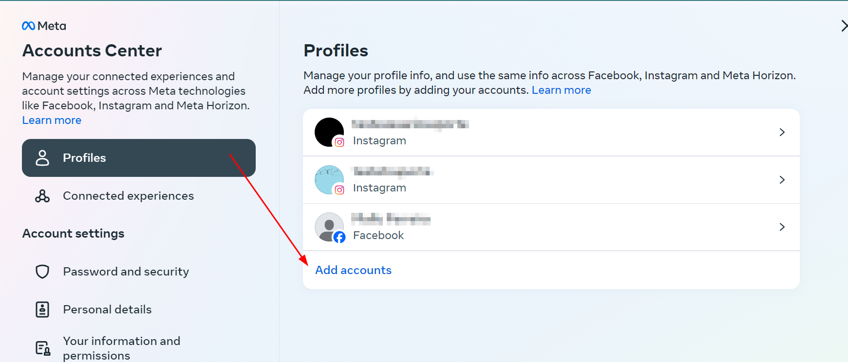 Now, connect your Instagram account to Facebook profile in Account Center: