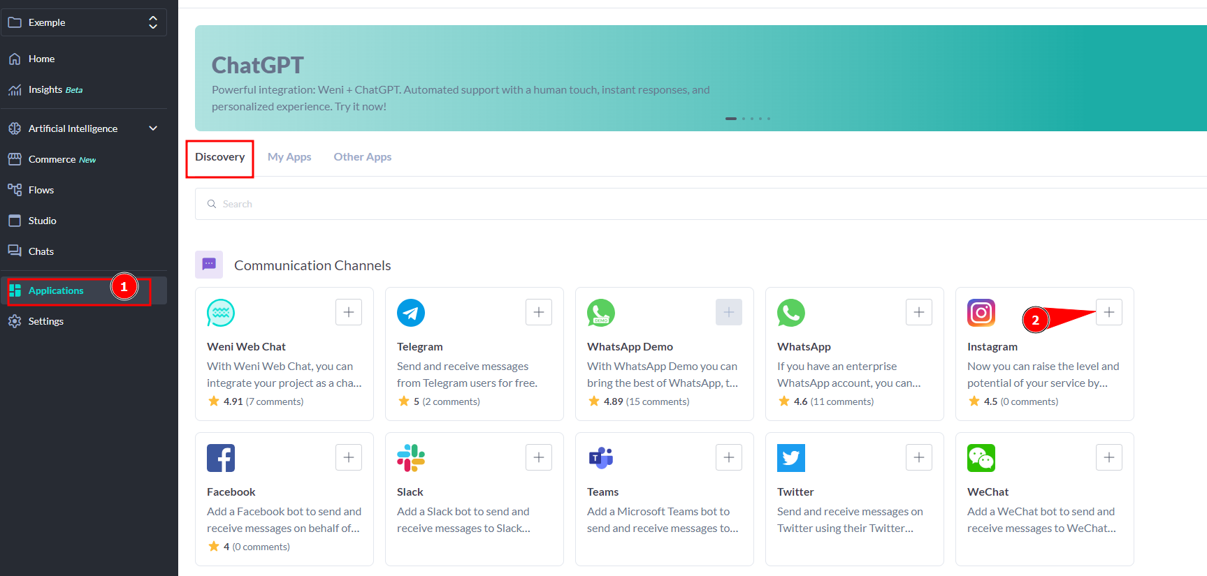 And now you can raise the level and potential of your service by creating a channel that integrates your Instagram to Weni Platform.