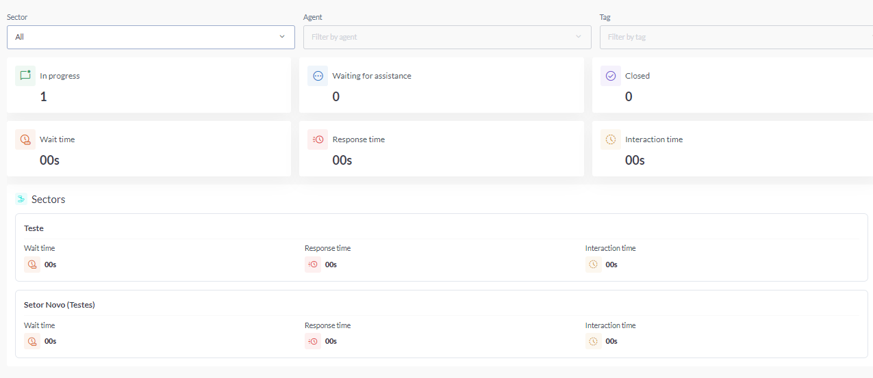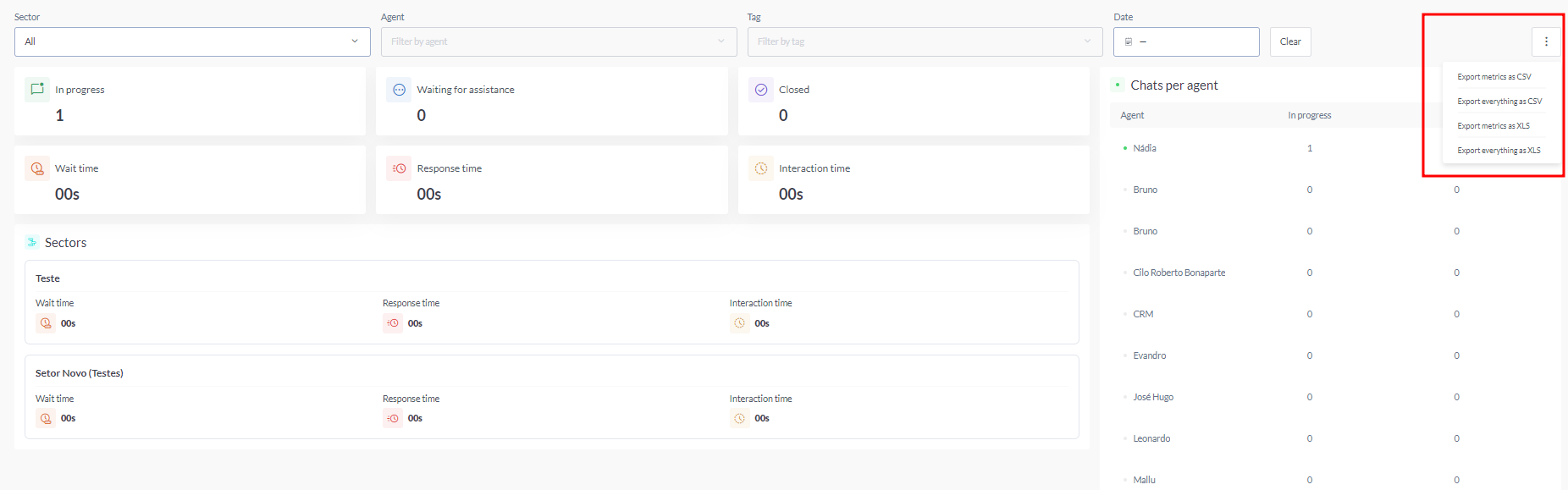 The user will see the list of Chats in chronological order, from most recent to oldest. In this list, you can view the contact’s photo, name, the agent who handled the interaction, tags used for classification, date, and a button to open the chat.