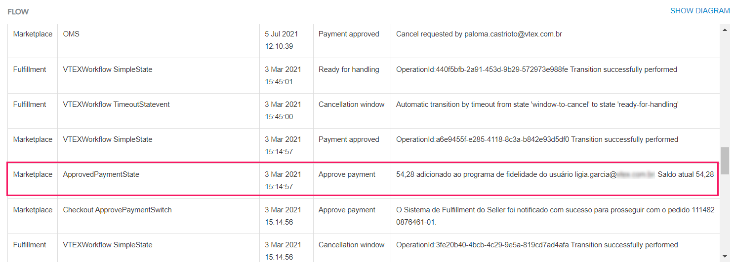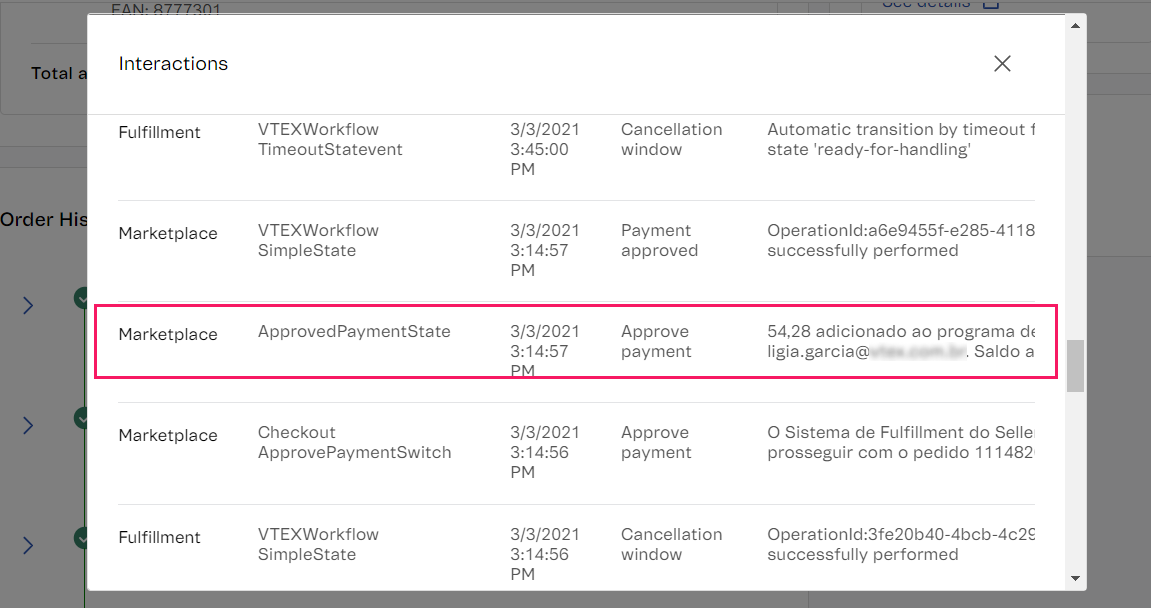 When a customer places an order which is eligible to receive a reward credit, you can view the applied promotion and value in the VTEX Admin under Orders management > All Orders on the Order details page.