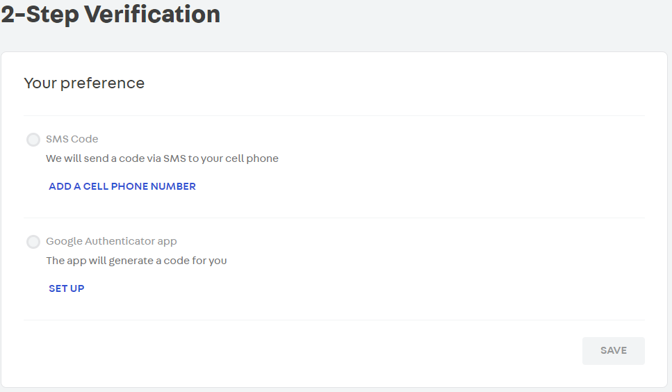 By clicking on 2-step verification you have access to two options: SMS Code and Google Authenticator App. See how to configure the 2-step verification in the article on how to [Enable login by 2-factor authentication](/en/tutorial/highlogin-by-2-factor authentication).