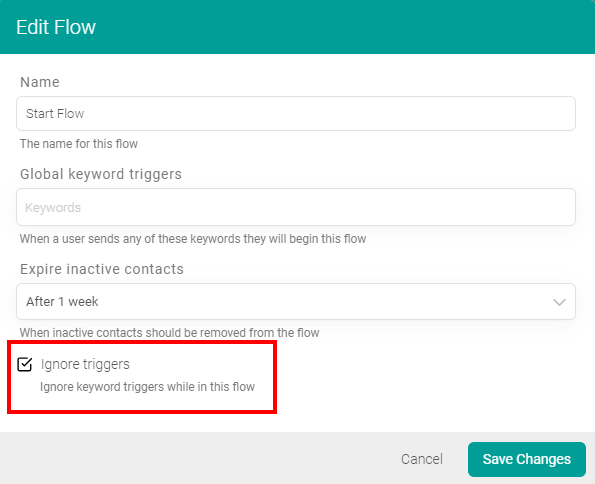 Tell a flow to ignore triggers and keywords
