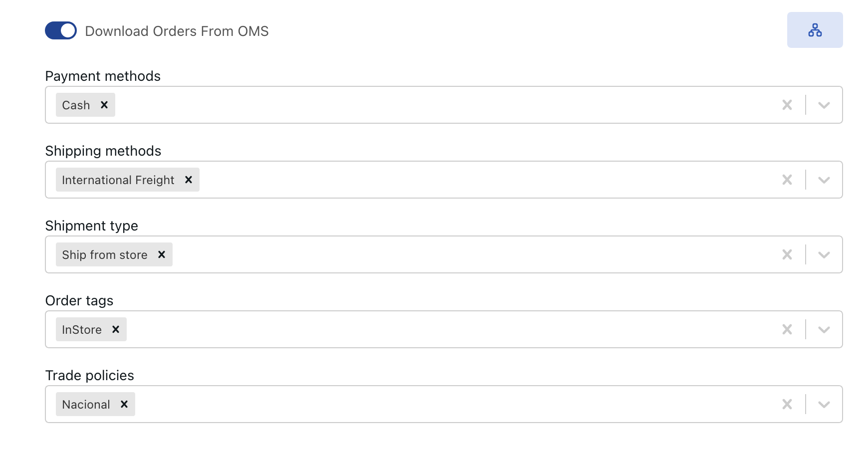 - Download Orders From OMS: Allows exporting orders from the OMS.