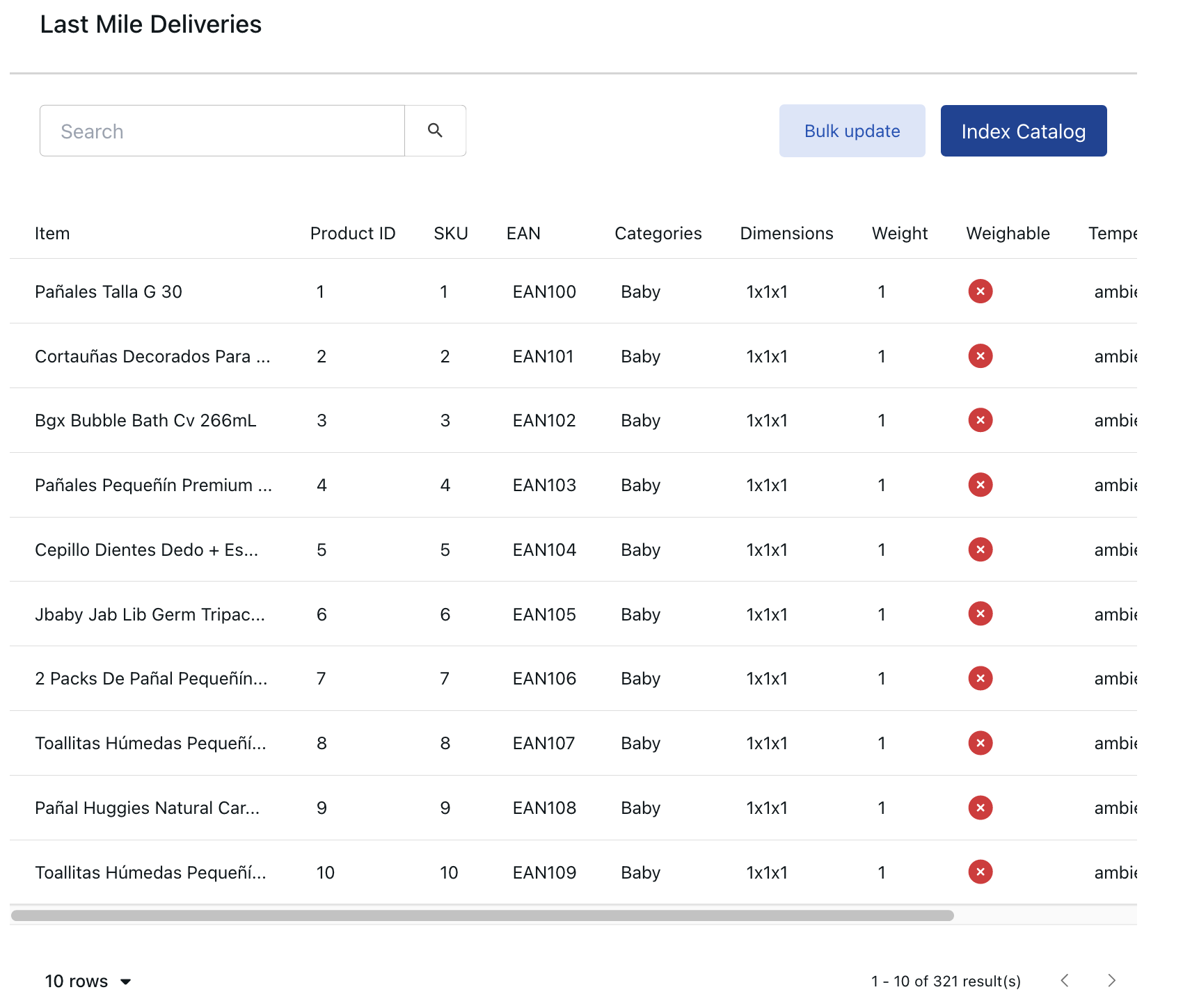 You can also index the catalog to update the product list. To do this, click Index Catalog and then Continue.