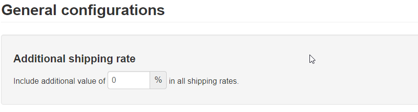 - In the section Additional shipping rate, enter a value. If you want to include a 10% fee, fill in the field with 10. Use a period to indicate the decimal place, such as 1.67.