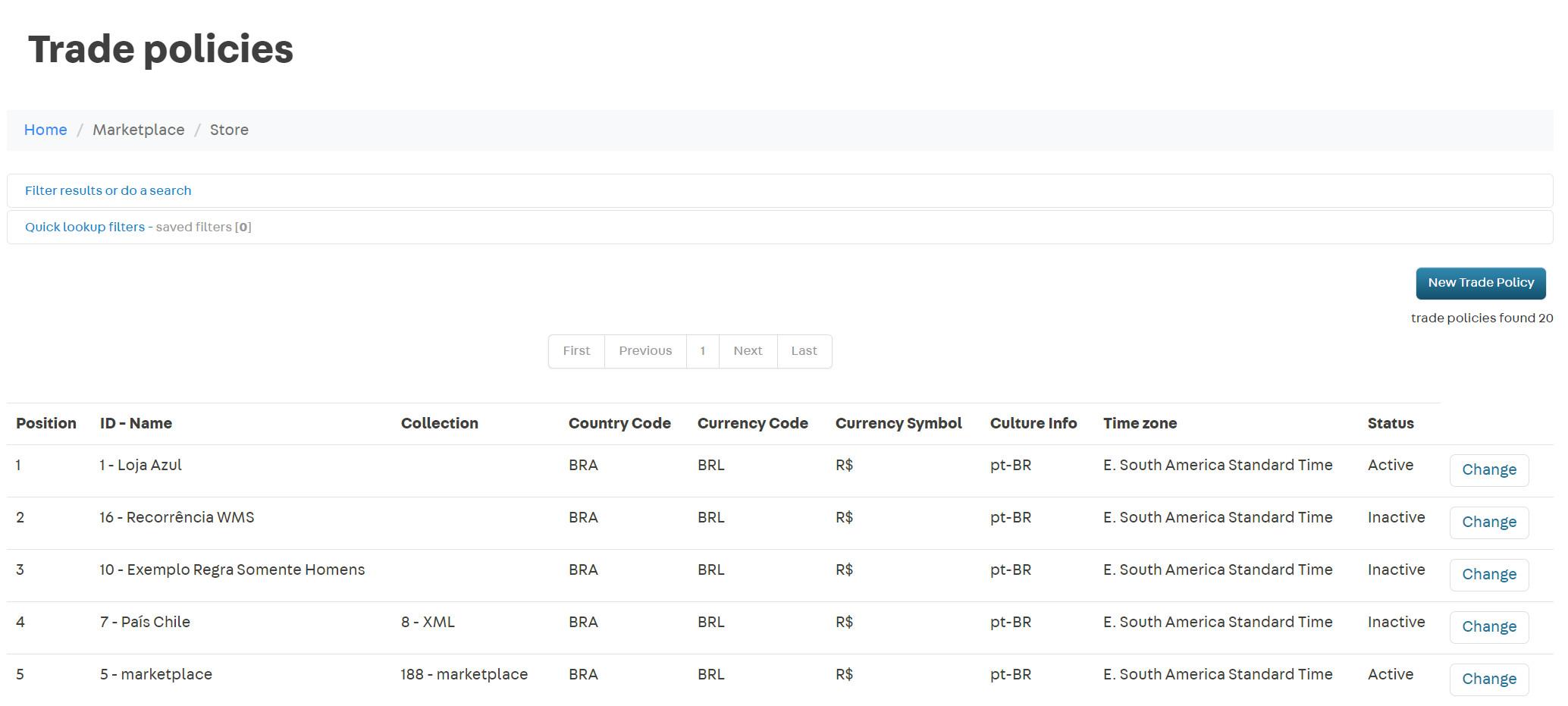 For each additional trade policy, a monthly fee is charged, whether it is used for integration with certified marketplaces, partners, external or VTEX.