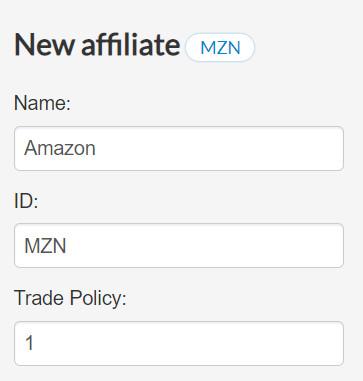 In the example above, the affiliate "Amazon" is associated with trade policy "1".