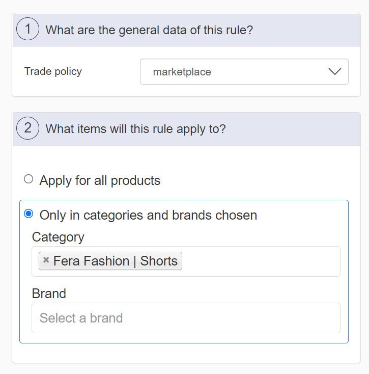 Sellers can restrict the availability of products in their catalog by using different trade policies. This is how sellers determine which products will be sold in each marketplace in which they operate. If your store sells electronics and clothing, in order to sell in an electronics-only marketplace, you must segment the product assortment and exclude clothing.
