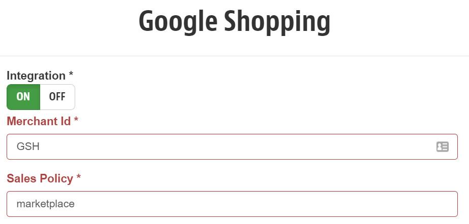 In the example above, the "Marketplace" trade policy applies to the Google Shopping integration.
