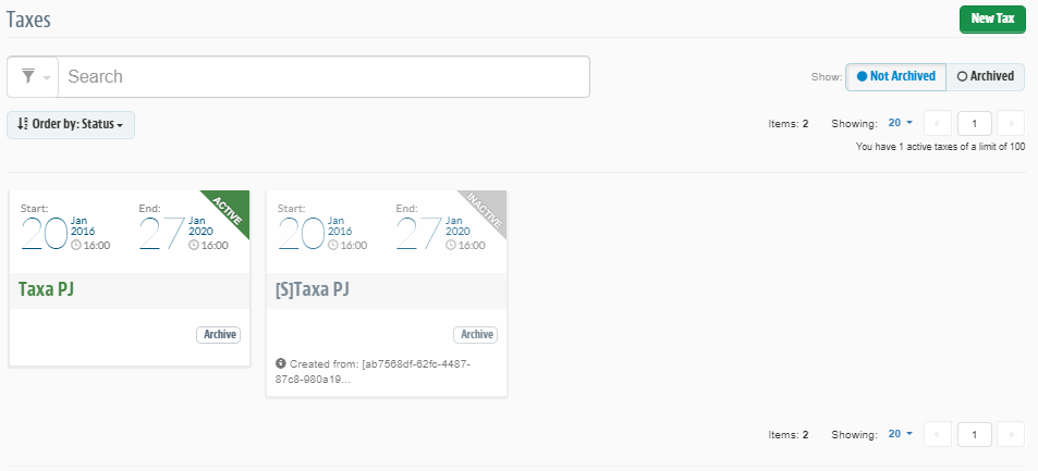 Here, you can define the incidence of taxes on your products. You can also filter, search and file fees. To better understand the characteristics of this configuration, check out our article about fees.