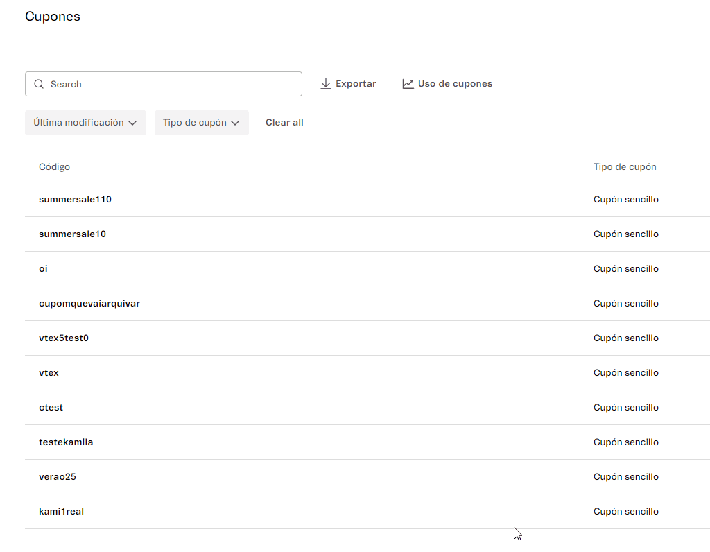 Hemos actualizado el Promociones > Cupones del Admin VTEX para incluir más información estratégica en la lista de cupones existente y brindar más posibilidades de configuración a la hora de crear nuevos cupones.