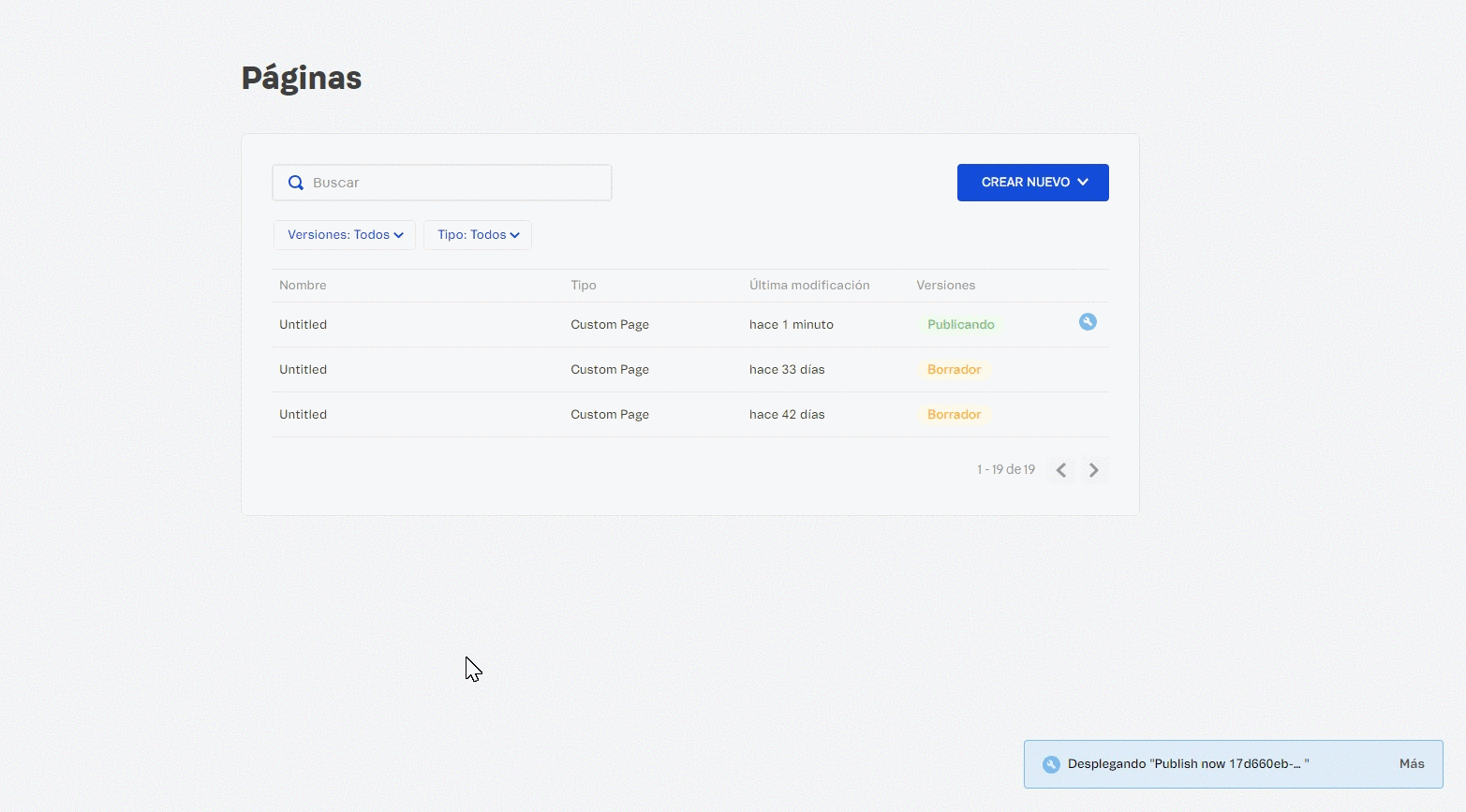 Headless CMS ofrece ahora una funcionalidad de notificaciones que te mantiene informado durante cada etapa del proceso de publicación. Las nuevas notificaciones proporcionan actualizaciones sobre cada etapa de las publicaciones en el VTEX Headless CMS, manteniendo a los usuarios informados acerca de las fases de compilación (build) de las publicaciones en Releases, VTEX Headless CMS y FastStore.