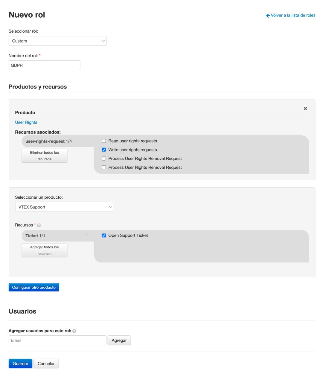 Luego, asigna este rol al retailer que será responsable de la solicitud de eliminación de datos de clientes.
