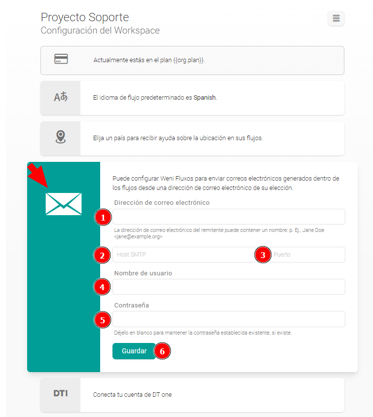 Si no desea configurar, puede dejar los campos en blanco para enviar correos electrónicos a través del HOST predeterminado de Weni.