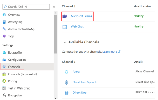 - Selecciona Canales en el panel de la izquierda y elige Microsoft Teams de la lista de canales disponibles.