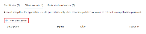 - En la sección Secretos de Cliente, selecciona Nuevo Secreto de Cliente. Aparecerá la ventana Agregar un Secreto de Cliente.
