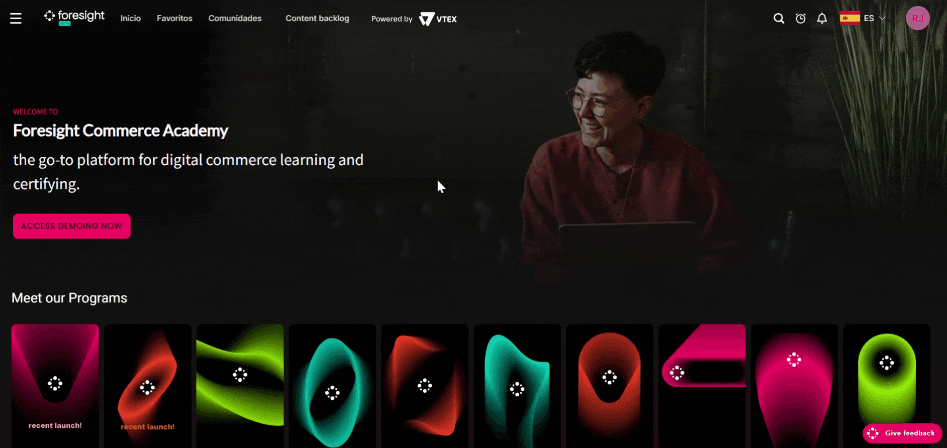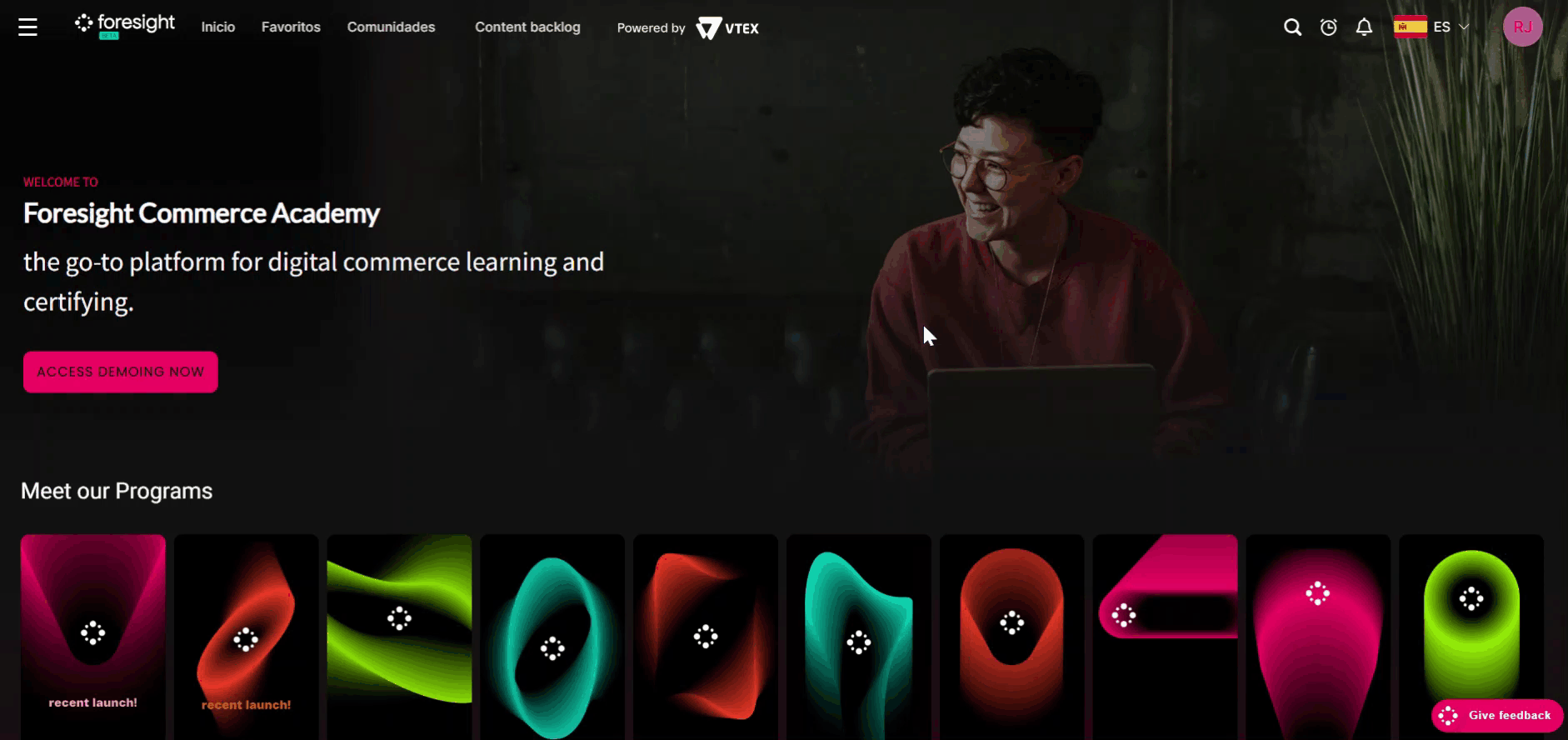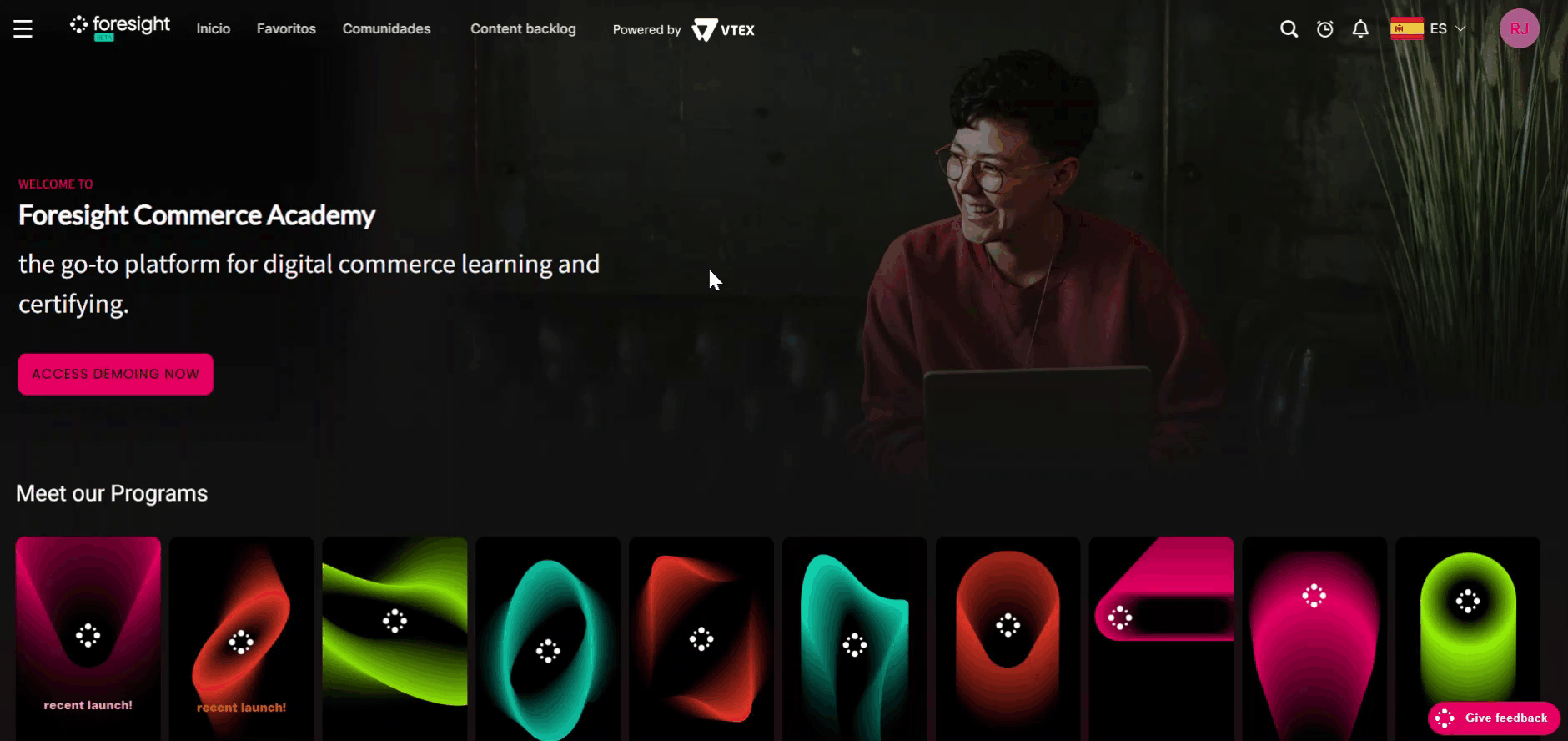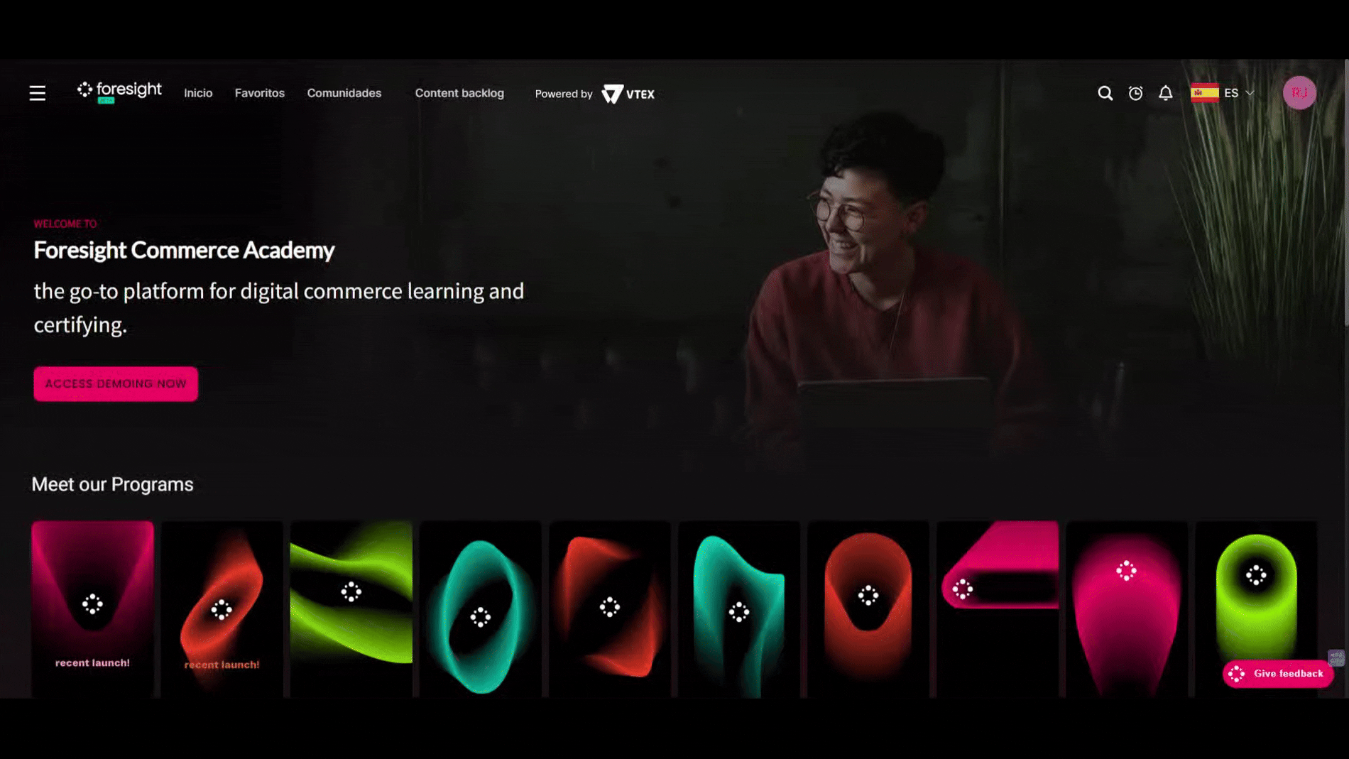 Foresight Commerce Academy es una plataforma educativa diseñada por VTEX destinada a compartir conocimientos sobre diversos temas relacionados con los negocios, la arquitectura y la tecnología VTEX.