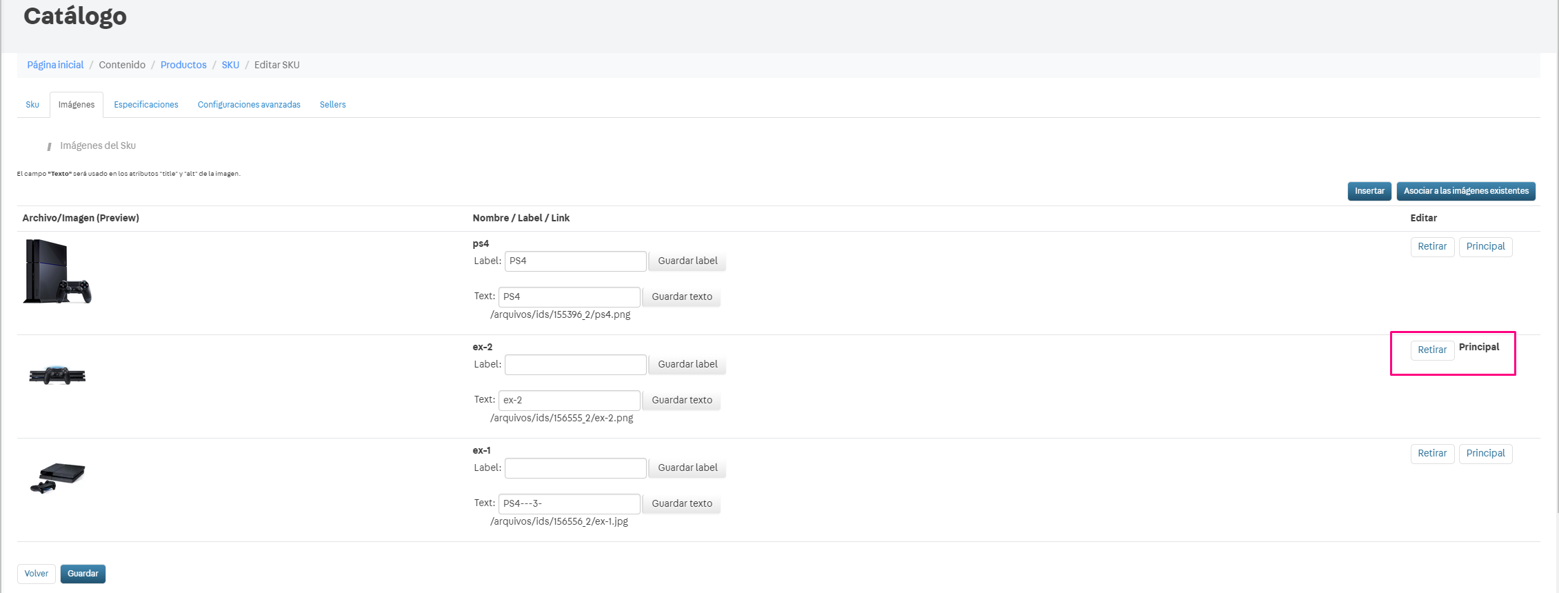 Entre las imágenes del SKU, la principal será aquella flechada en el registro de imágenes como principal.
