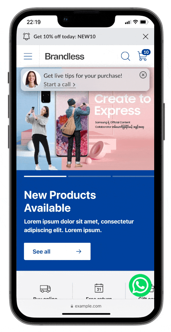 • Mensaje para notificar al cliente que ya puede acceder a su cita con el personal shopper: ingresa el mensaje que se enviará al cliente para unirse a una sesión de personal shopper.