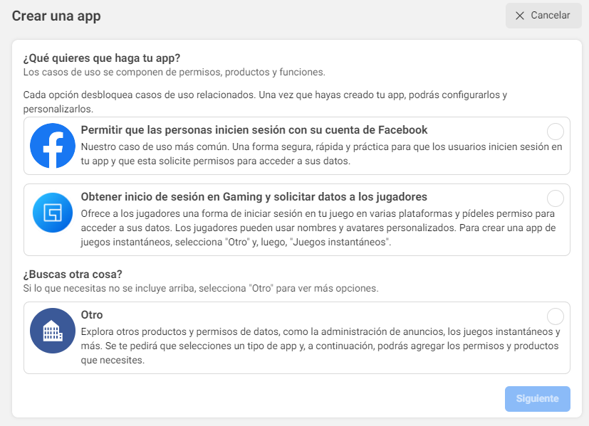 Para empezar, debes registrar una aplicación en Facebook siguiendo los pasos a continuación: