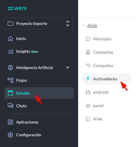 Todos los pasos descritos aquí se realizarán en la pestaña ""Activadores"", ubicada dentro del módulo ""Estudio"".