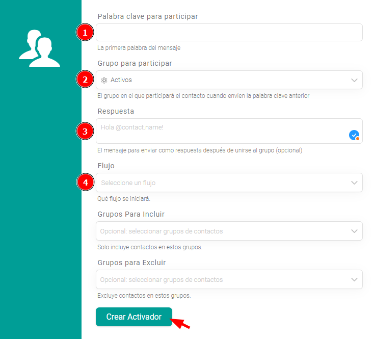 Para crear un activador con una palabra clave que una contactos a un grupo: