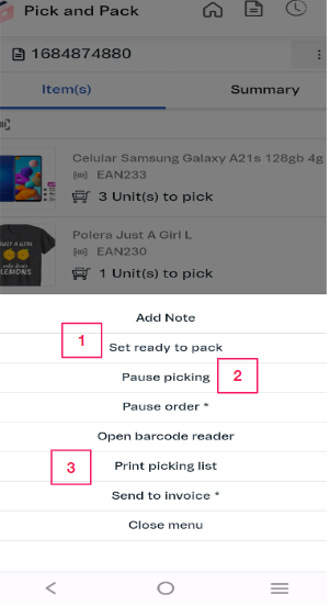 Verifica los productos del pedido que seleccionaste y toca la opción Empaquetar producto.