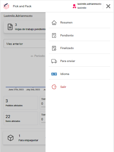 Al entrar como Administrador tendrás acceso a la opción Pedidos desde el panel de Pick and Pack.
