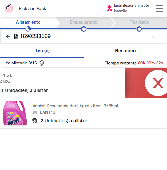 Sitúate en el producto que deseas alistar, y desliza hacia el lado derecho.
