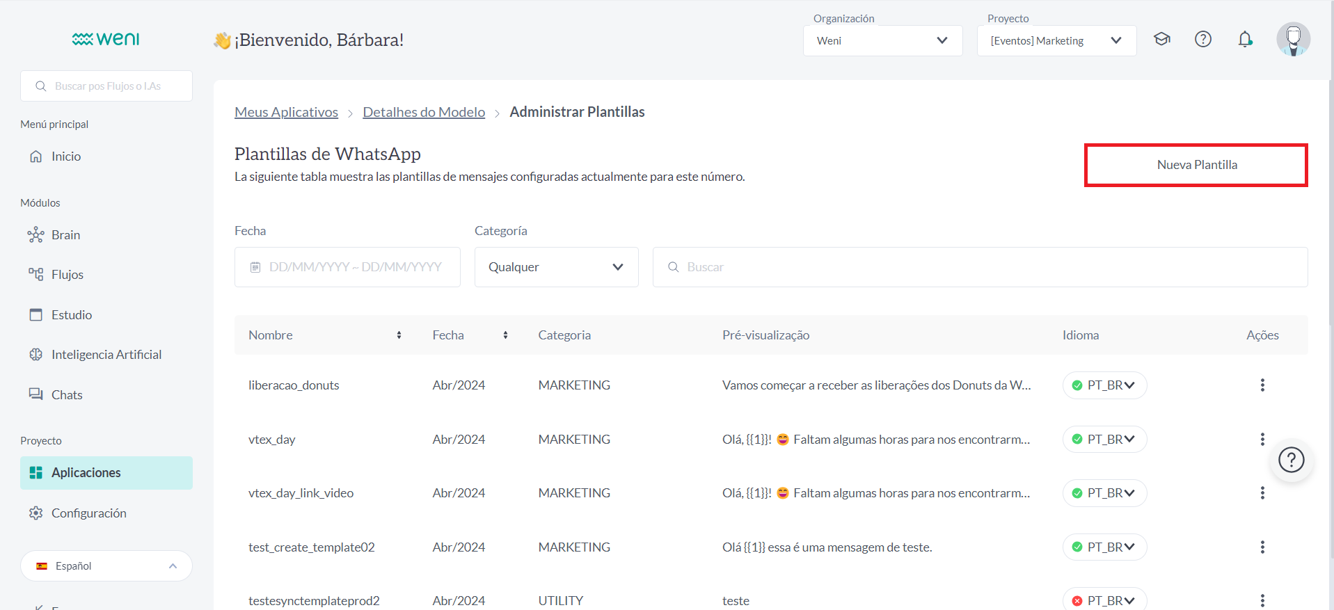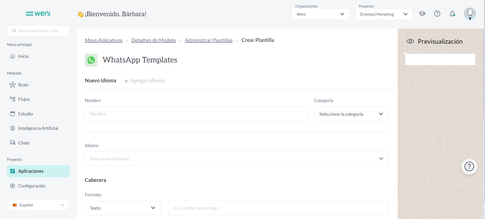 Puedes usar la plataforma Weni para crear modelos de mensaje manualmente y enviarlos para su aprobación.