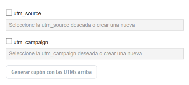 - Haga clic en 'Crear cupón a partir de las UTMs arriba'.