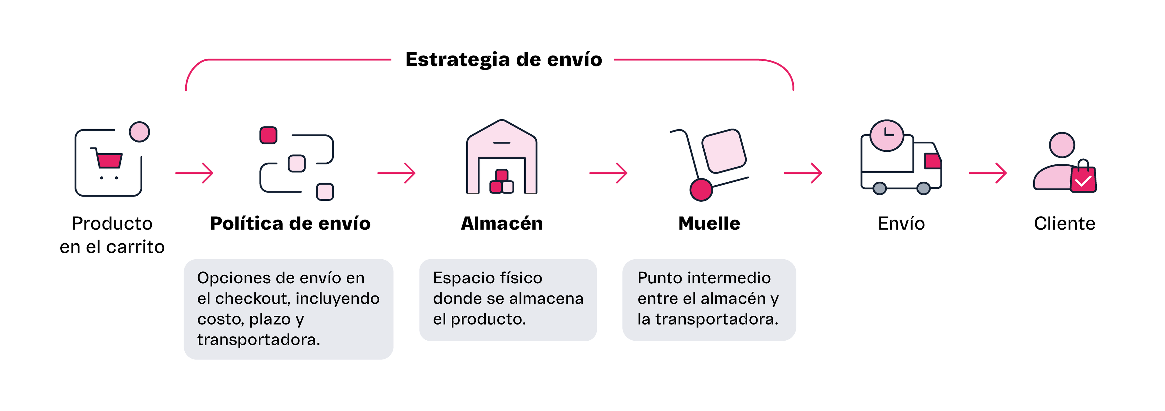 La estrategia de envío en una tienda VTEX engloba las configuraciones logísticas esenciales y define la relación entre los siguientes elementos: