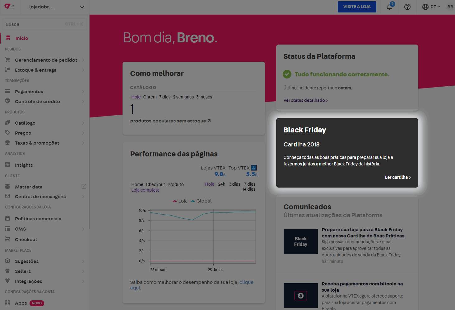 Disponível para clientes e parceiros VTEX, o guia pode ser acessado pela homepage do seu Admin ou diretamente pela URL https://{AccountName}.myvtex.com/admin/blackfriday. Basta substituir {AccountName} pelo Account Name da sua loja.