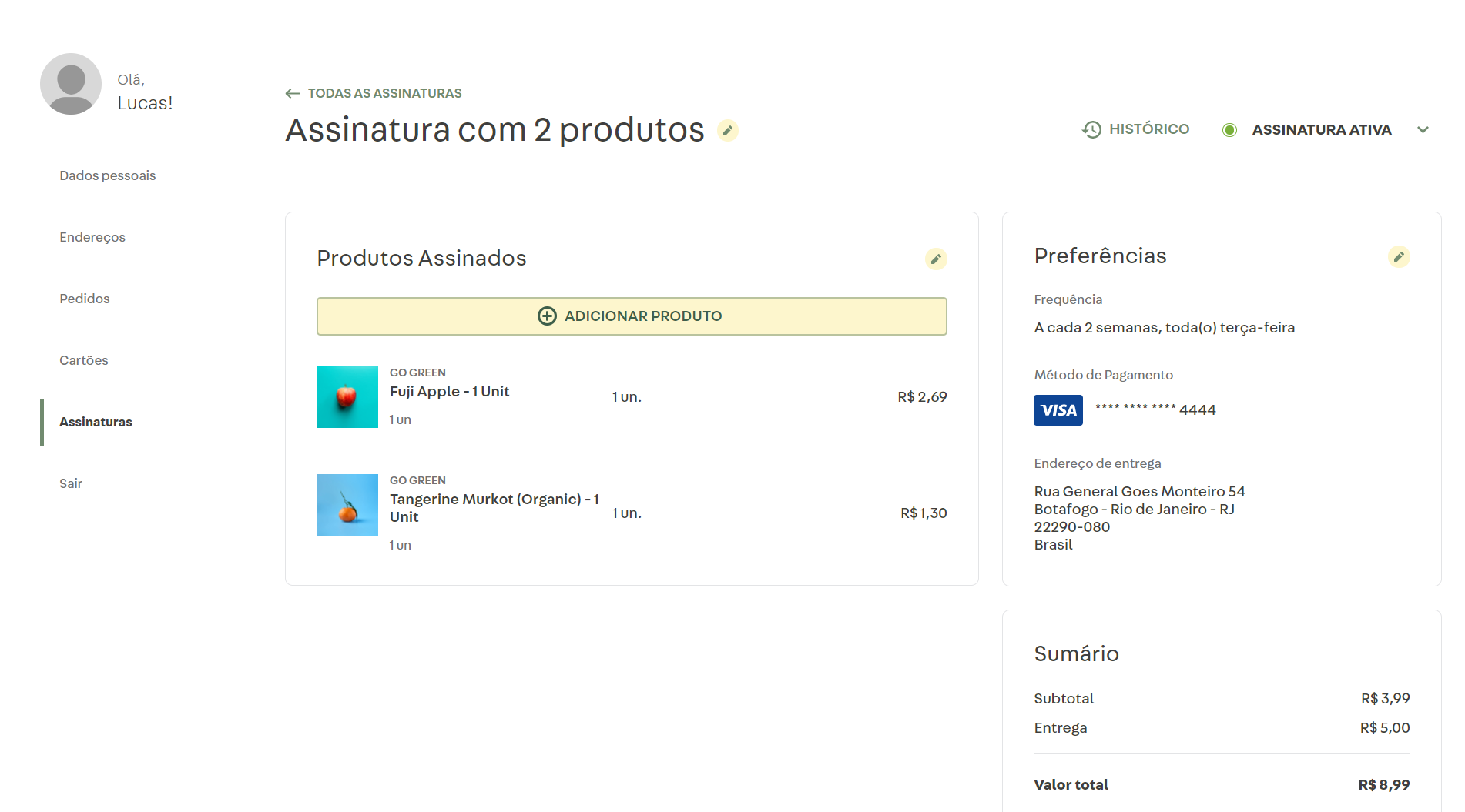 A nossa página de detalhamento de assinatura foi remodelada pensando em melhorar a experiência do consumidor ao reduzir o tempo para localizar informações e realizar tarefas. Além disso, contamos com a nova funcionalidade de adicionar itens a uma assinatura existente.