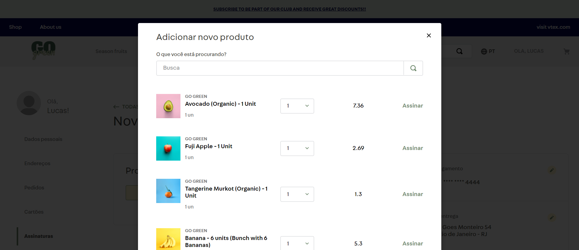 Agora é possível adicionar um novo item à sua assinatura através da busca dos produtos disponíveis na loja.