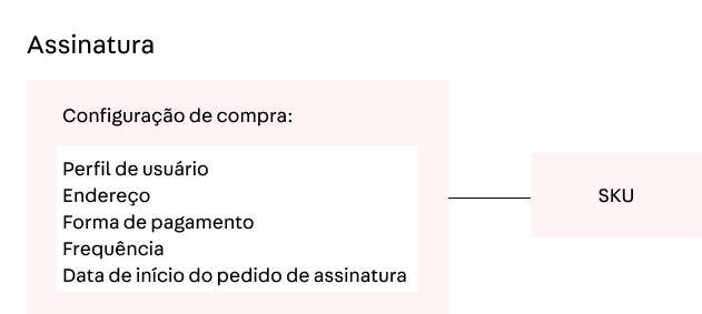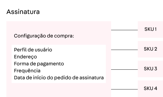Até então, para o sistema da VTEX, uma assinatura era composta por um SKU, atrelado a uma configuração de compra. Isso permitia que o consumidor da loja assinasse SKUs com endereços de entrega e até mesmo formas de pagamento diferentes – uma evolução em comparação à primeira versão do sistema.
