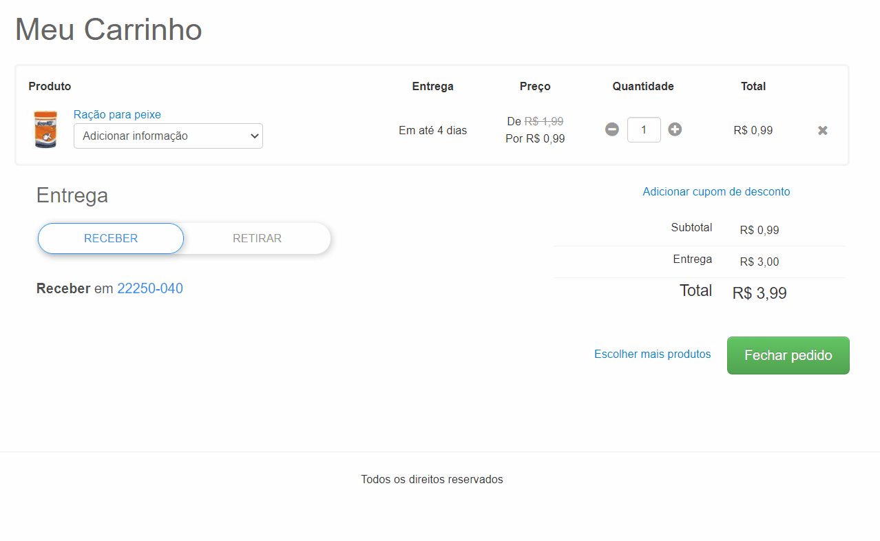 Antes, as assinaturas não tinham pontos de retirada como uma das opções de entrega. Com a nova funcionalidade, o cliente final pode escolher pontos de retirada para itens de um pedido de assinatura no momento do checkout, conforme ilustrado na imagem abaixo.