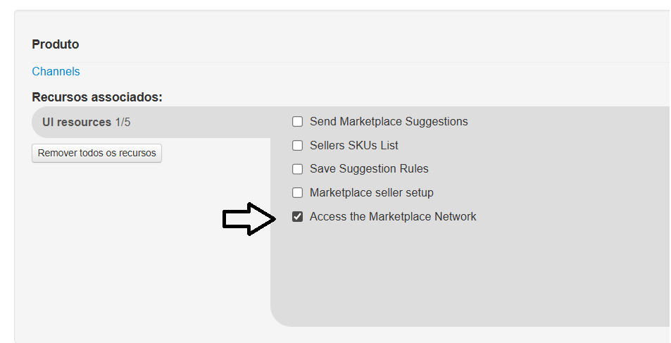 - Na seção UI resources, localize e marque a opção Access the Marketplace Network.