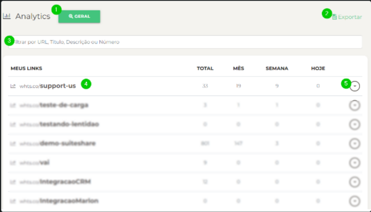 4 Link : Clique no link para obter o relatório daquele link específico e todas as suas estatísticas.