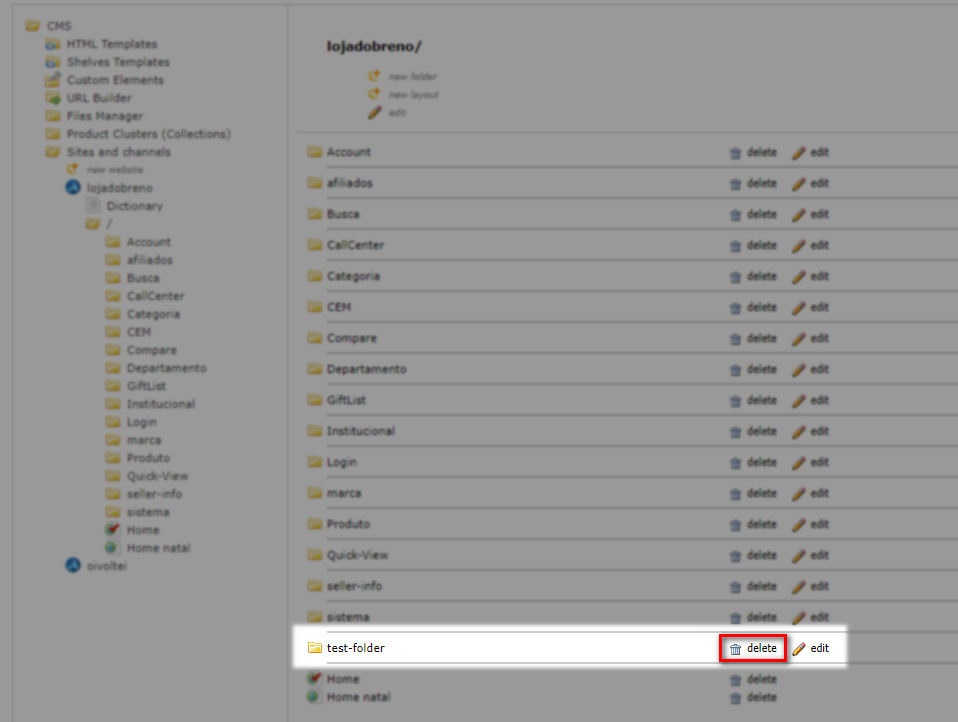 Apagar uma pasta do CMS